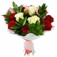 • Из красных и белых роз с зеленью