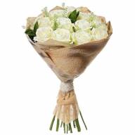 Нежный, изысканный букет из прекрасных белоснежных роз. Гармоничности оформлению придает декоративная зелень. Такой букет символизирует честность, верность и наисветлейшие чувства, выражает глубокую привязанность. Такой букет украсит официальное торжество, станет отличным подарком ко Дню рождения, подойдет для раскрытия своих чувств на первом свидании.