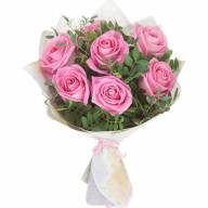 Милый и утонченный букет из прелестных розовых роз светлого оттенка. Выражает уважение, привязанность и глубокую симпатию того, кто подарил этот букет. Композиция букета простая и ненавязчивая, декорирована зеленью, которая нежно обрамляет цветы, подчеркивая их цвет и прелесть. Букет подойдет как для официальных мероприятий, так и в качестве внезапного подарка для любимого человека.