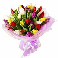 Насыщенный букет из тюльпанов ярких цветов сможет показать вашу радость, хорошее настроение и оптимизм. Букет отлично подходит для веселого праздника, например, Дня Рождения или именин. Разноцветный набор тюльпанов дарится не только любимым женщинам, но и друзьям для повышения радости и толчка к новым эмоциям. Яркие тюльпаны хорошие помощники в извинении, помогут разбудить счастье и позитив.